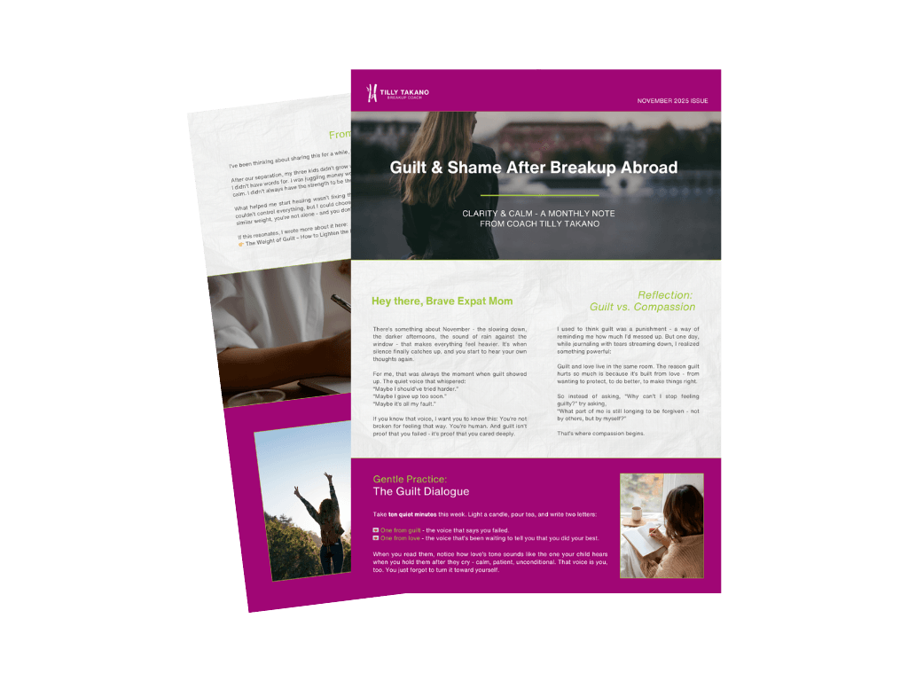 This month’s Clarity & Calm newsletter offers gentle support for expat moms navigating guilt after a separation.